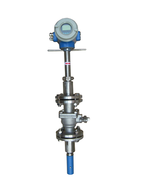 3、將DN50球閥安裝到安裝底座上,注意球閥的長空腔向上,檢查球閥是否能全開、全關(guān),將壓緊螺紋座、壓緊螺母和橡膠密封圈安裝到球閥上,松開定位螺母,將傳感器插入桿通過球閥插入被測管道,同時應(yīng)注意傳感器方向標(biāo)志桿指向應(yīng)和流體流向一致。